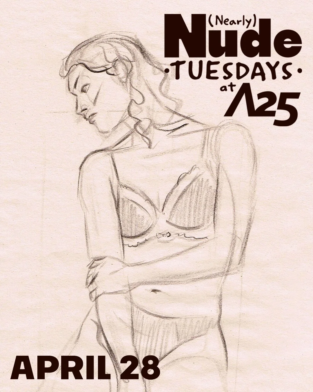 Three hours of short, nude poses, ranging from one to 30 minutes in length. Easels, boards, small tables and drawing horses provided.