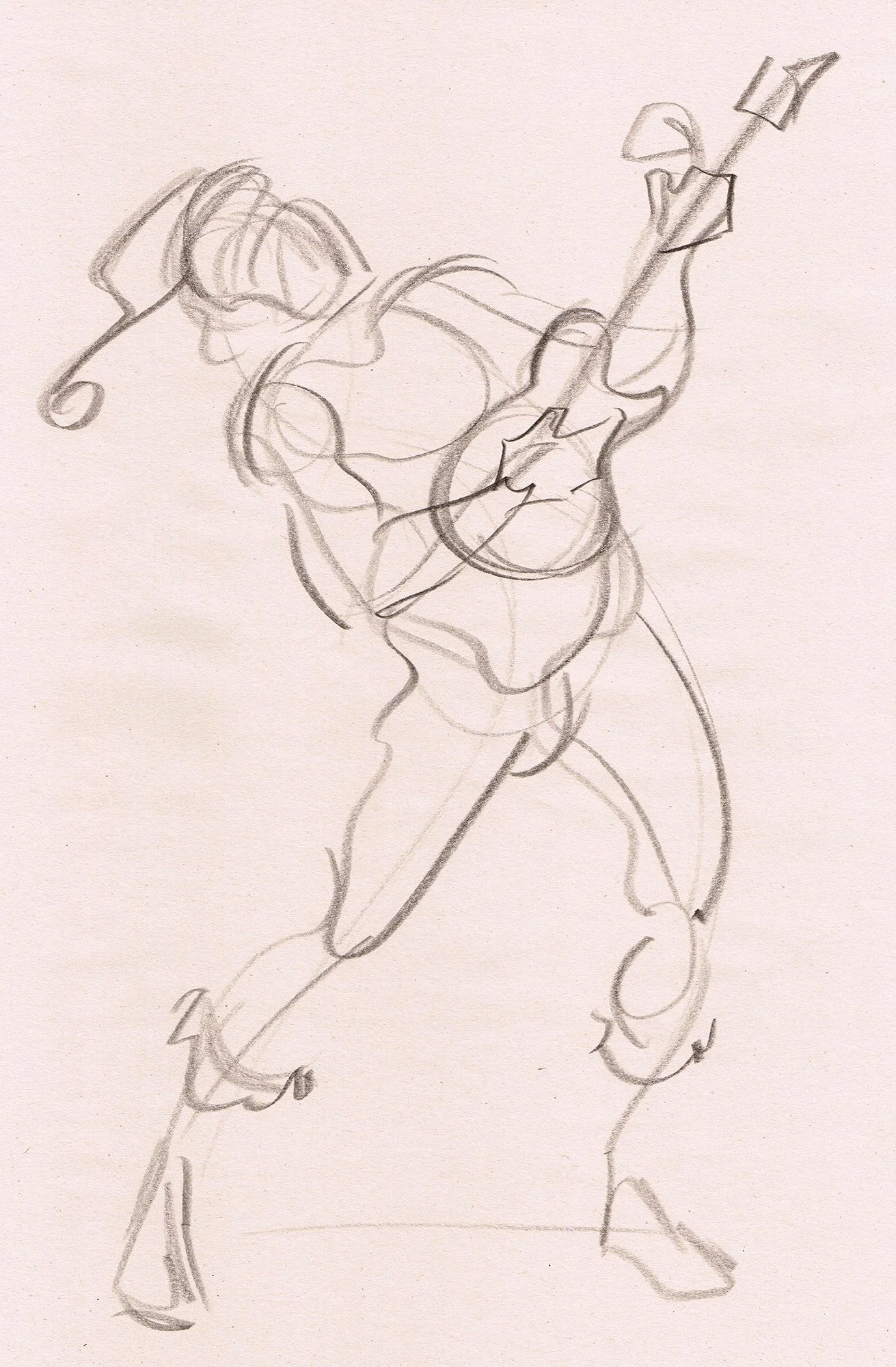 Modeled by John at my bi-weekly art night, (Nearly) Nude Tuesdays. This session was a costumed ‘holiday special’. All drawings are chocolate Derwent drawing pencil on newsprint.