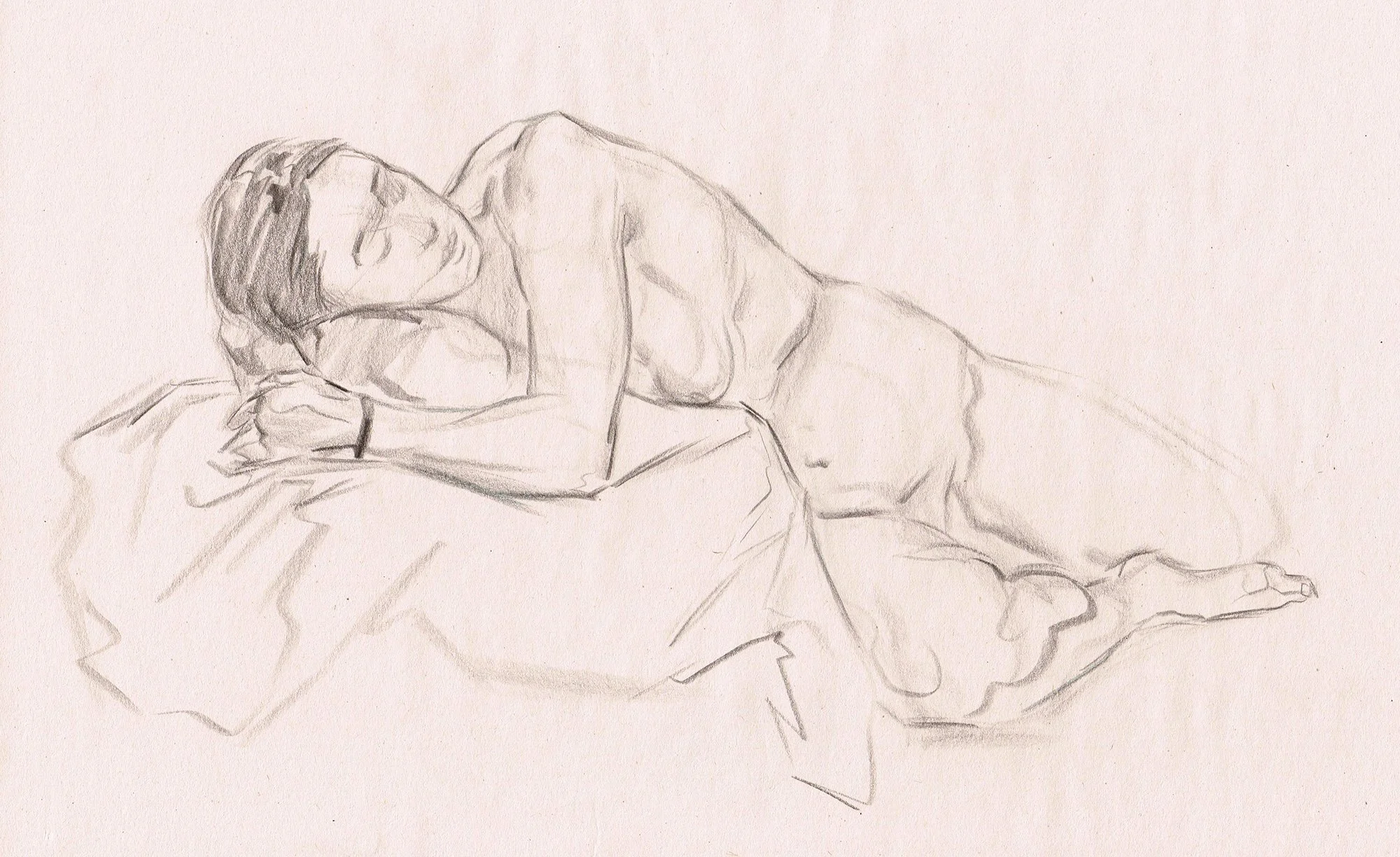 Modeled by Lady Poser at my bi-weekly life drawing night (Nearly) Nude Tuesdays at Artists 25. All drawings are chocolate Derwent drawing pencil on newsprint.