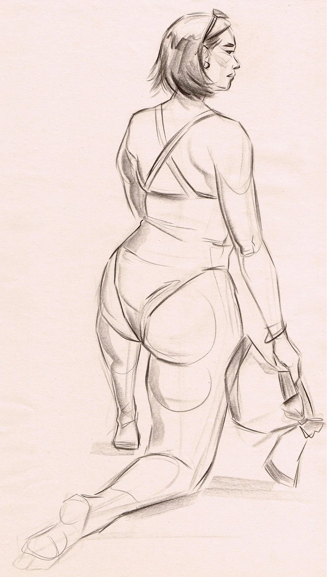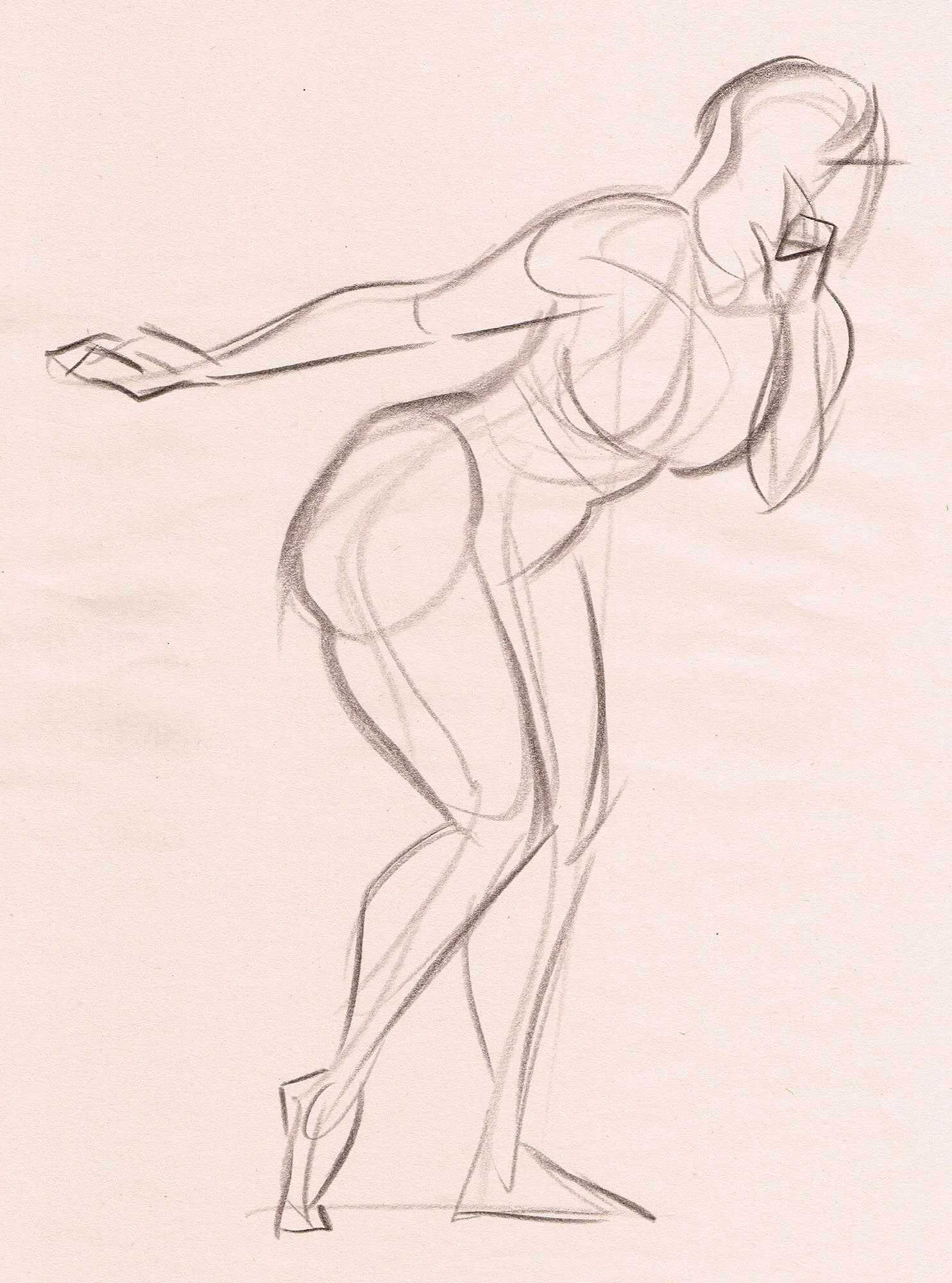 Modeled by Lady Poser at Artists 25. All drawings are chocolate Derwent drawing pencil on newsprint.