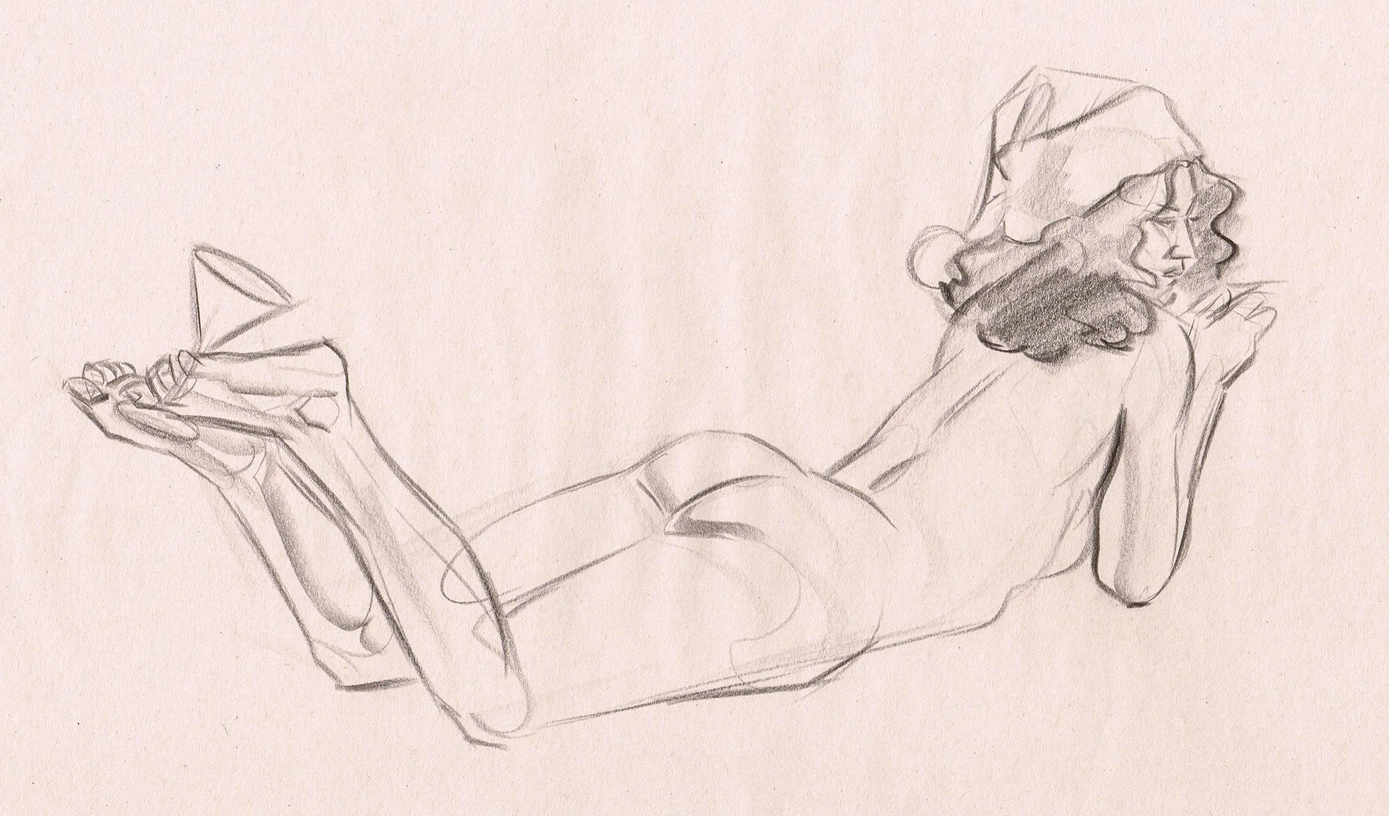 Modeled by Nella at Artists 25. All drawings are chocolate Derwent drawing pencil on newsprint.