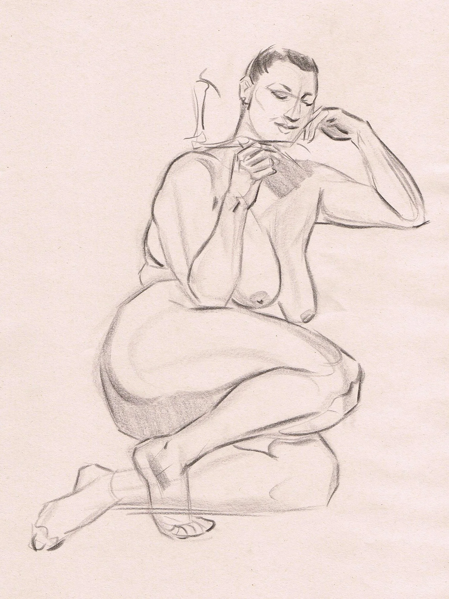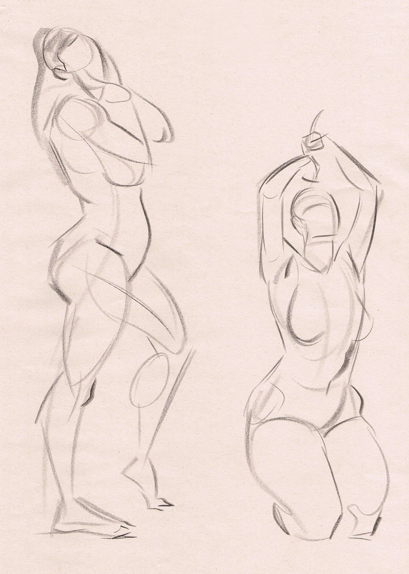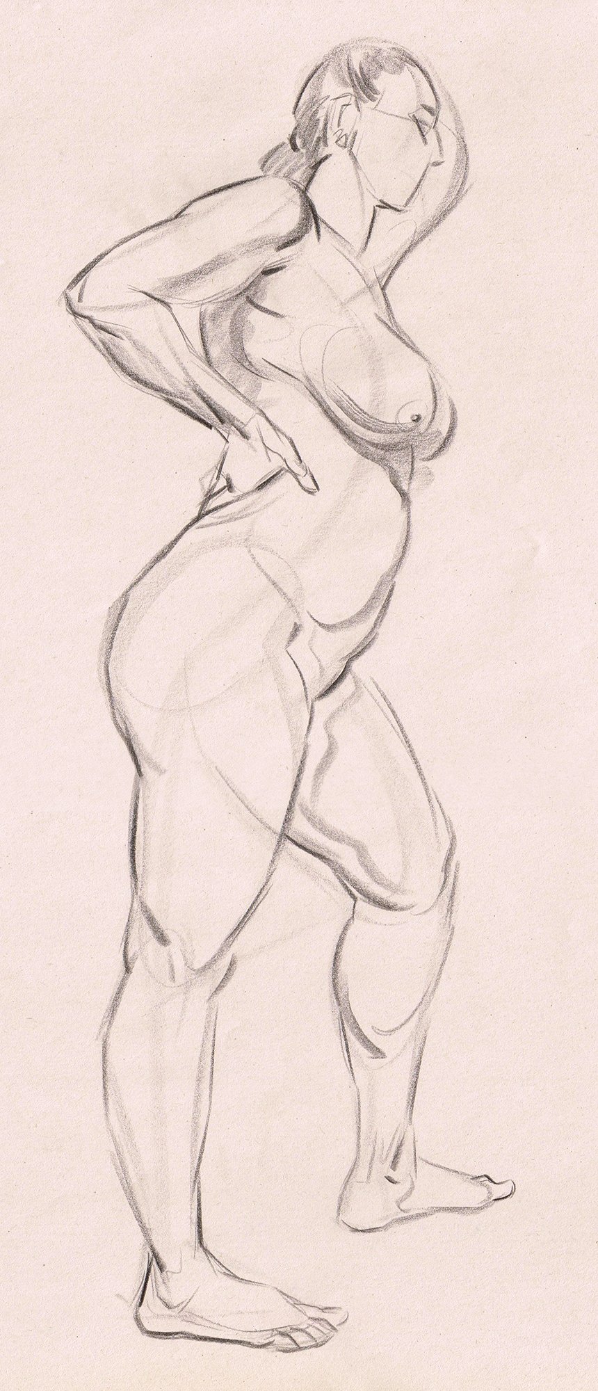 Modeled by Nora at Artists 25. I host uninstructed, drop in figure drawing every other Tuesday in the studio. All drawings are Chocolate Derwent drawing pencil on newsprint.