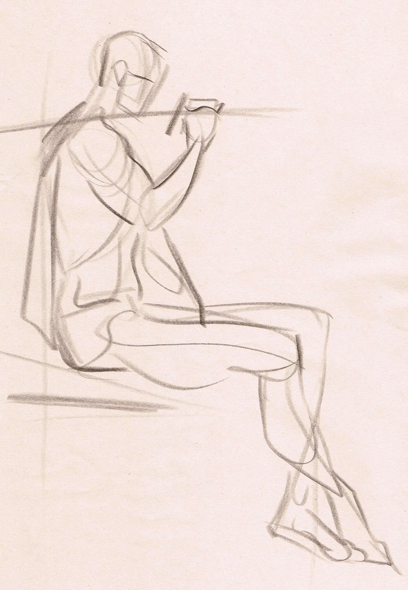 Modeled by Sammy Hamid at Artists 25. All drawings are chocolate Derwent drawing pencil on newsprint.