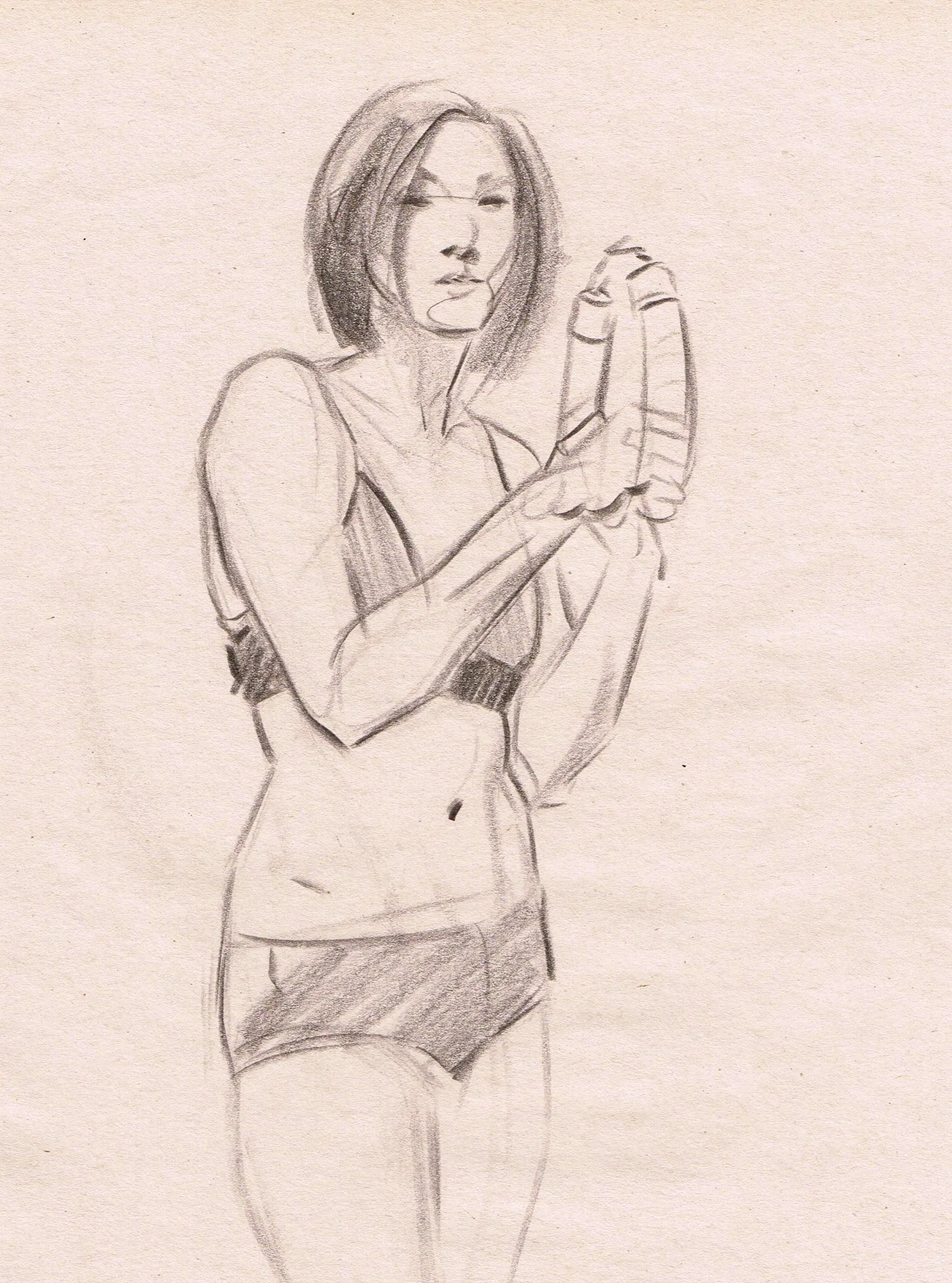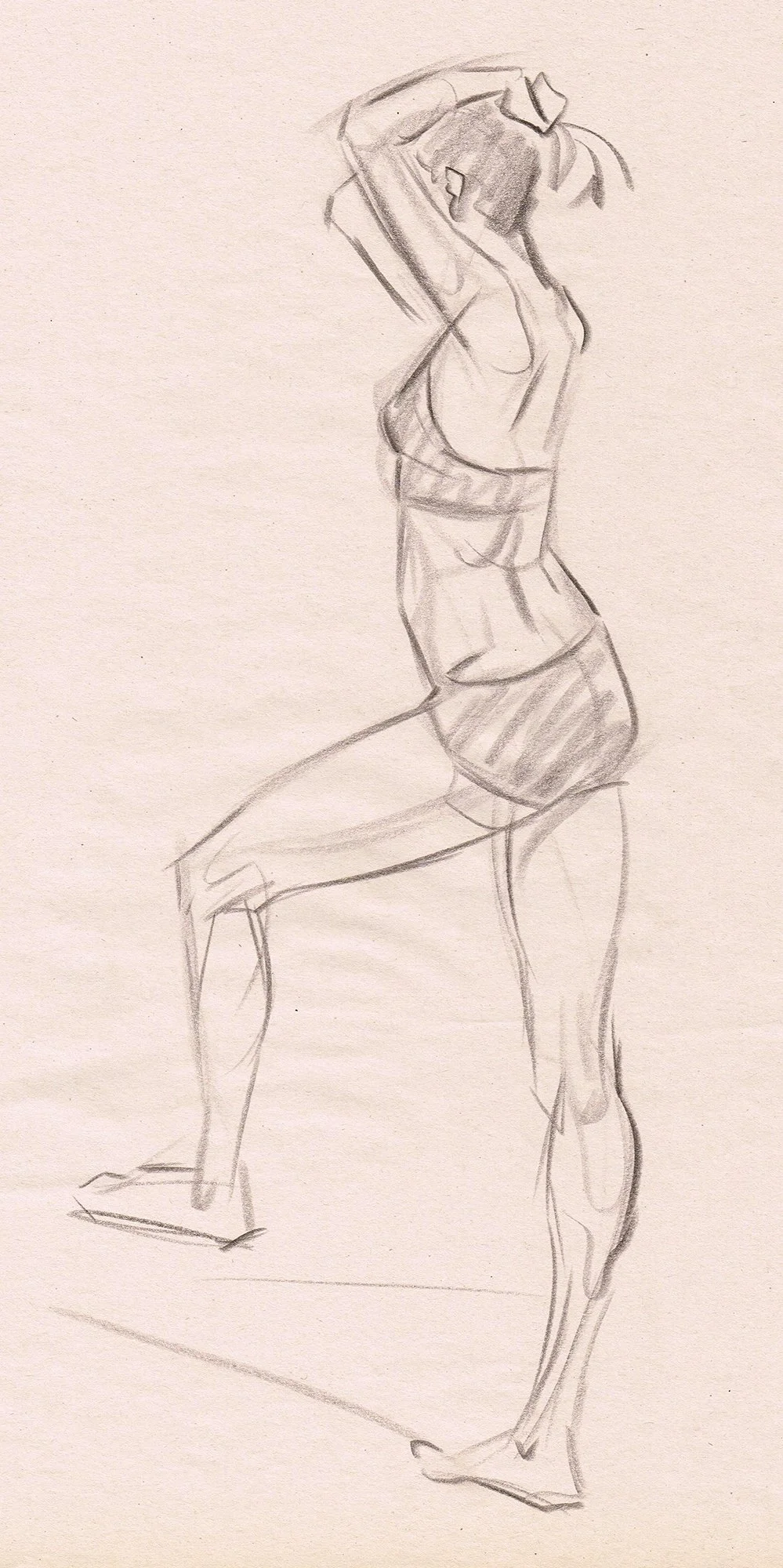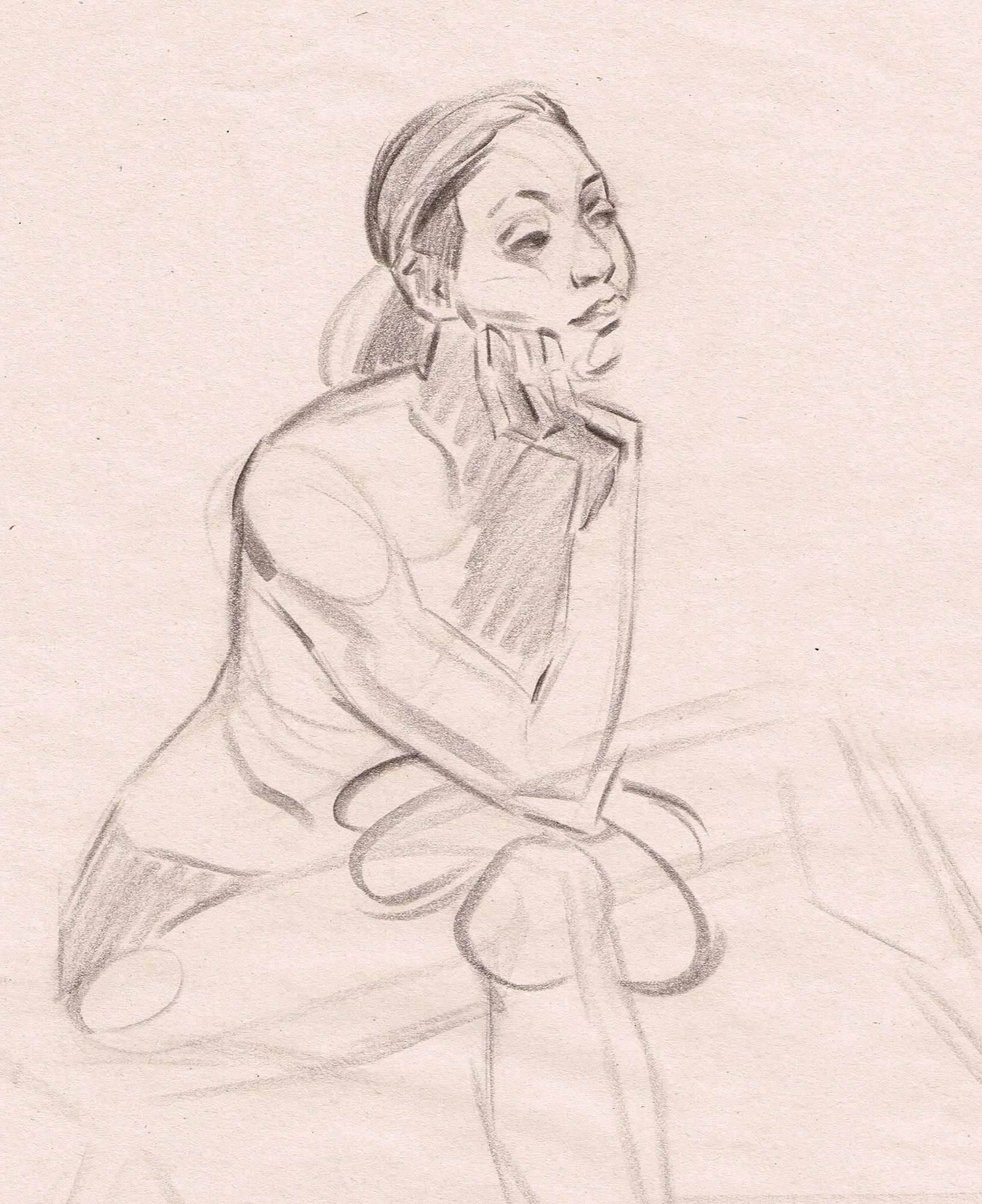 Modeled by Yuri at Artists 25. I host uninstructed, drop in figure drawing every other Tuesday in the studio. All drawings are Chocolate Derwent drawing pencil on newsprint.